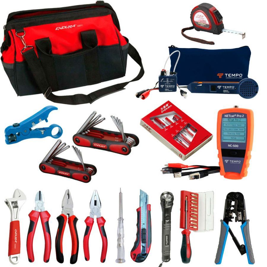 Набор инструментов [ SK-LAN-2-PRO ] (для обслуживания кабельных линий связи с измерителем длинны линии)