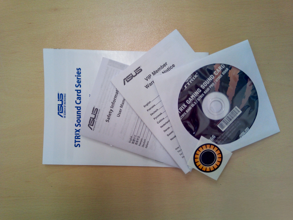 ASUS всегда умели доставлять удовольствие прекрасно упакованными устройствами из серии Strix, которая относится к линейке Republic of GamersSOAR – не стала исключением. Звуковая карта упакована в массивную коробку с прекрасной полиграфией множеством информации на ней. Но вот комплект поставки для звуковой карты совсем скудный, даже учитывая, что игровое устройство выступает в бюджетном сегменте. Помимо самой звуковой платы в комплекте можно обнаружить множество макулатуры в виде рекламных брошюр и нескольких инструкций пользователя, а также диск с драйверами и ПО для звуковой карты и небольшой наклейки логотипа Strix. Не хватает хотя бы нескольких элементарных кабелей и/или переходника с 3,5 мм (мини-джек) на 2xRCA. Также не помешал бы переходник со стандартного «молекса» на 6-пиновый PCI-E для тех, кто уже использовал все имеющиеся кабели питания для видеокарты или нескольких GPU.