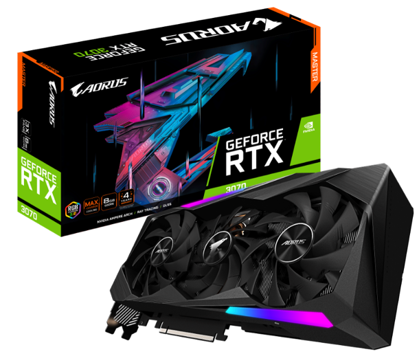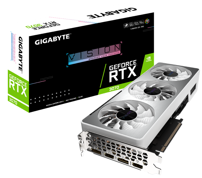 Тайбэй, Тайвань, 29 октября 2020 г. – компания GIGABYTE TECHNOLOGY Co. Ltd., ведущий производитель материнских плат, графических 3D-ускорителей и других ключевых компонентов для настольных ПК, анонсирует новые ускорители трехмерной графики на базе графических процессоров NVIDIA® GeForce RTX™ 3070-серии (микроархитектура NVIDIA® Ampere™). На момент анонса модельный ряд продуктов GIGABYTE представлен 5 моделями – AORUS GeForce RTX™ 3070 MASTER 8G, GeForce RTX™ 3070 GAMING OC 8G, GeForce RTX™ 3070 VISION OC 8G, GeForce RTX™ 3070 EAGLE OC 8G и GeForce RTX™ 3070 EAGLE 8G, которые адресованы различным категориям пользователей и отвечают требованиям самых взыскательных клиентов. Модель AORUS MASTER изначально разрабатывалась для энтузиастов, которым необходима максимальная производительность видеоподсистемы и оригинальная RGB-подсветка изделия. Графическая плата GAMING OC – продукт массового спроса, оптимальный выбор для большинства поклонников компьютерных игр. Ускоритель трехмерной графики VISION OC адресован в первую очередь созидателям цифрового медиаконтента, для которых игровые характеристики продукта второстепенны, однако, имиджевая составляющая имеет значение. Целевая аудитория графических плат семейства EAGLE – пользователи, основные запросы которых в отношении видеоподсистемы связаны с ее производительностью в 3D-приложениях и продолжительным ресурсом работы изделия.