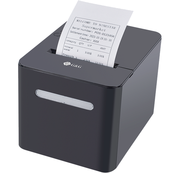 Высокоскоростная бесшумная печать: скорость печати - 250 мм/с, поддерживает широкий диапазон ширины ленты - 58 мм и 80 мм, что делает GG-TD80 универсальным помощником для печати различных чеков.