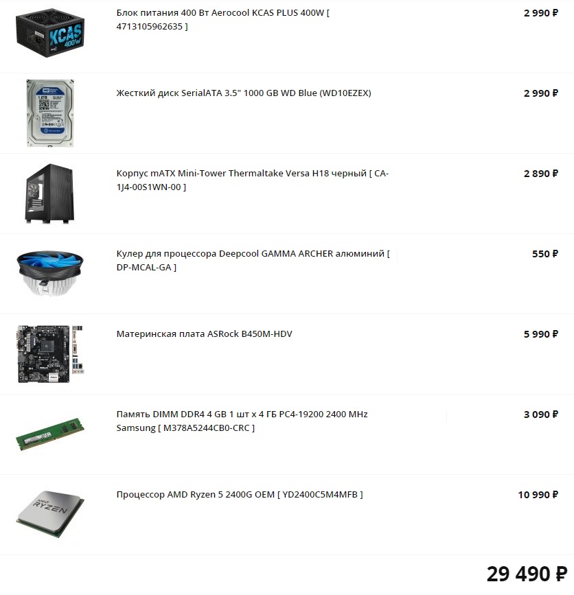 В результате мы получили две примерно идентичных как по производительности, так и по цене сборки, которые отлично подойдут в качестве домашнего компьютера для выполнения повседневных задач, веб-серфинга, учебы и работы. Сборка на основе процессора Intel обойдется чуть больше 29 тысяч рублей, что по современным меркам вполне адекватный ценник. Сборка на процессоре AMD выйдет немного дороже (примерно на 200 рублей), но из-за интегрированного видеоядра Radeon Vega 11 производительность такого ПК в играх будет однозначно выше. К слову, чтобы увеличить скорость загрузки операционной системы, программ и приложений, не стоит забывать про SSD-накопители. Один из самых оптимальных вариантов - Silicon Power Velox V60 объемом 120 ГБ. Но учтите, что общий ценник на компьютер с твердотельным накопителем тут же "взлетит" почти на 3,5 тысячи рублей.
